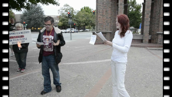 In a bit of street theater, occupy activists conducted an intervention with Uncle Sam (played by Attorney Ed Frey) and confronted him with the fact that he is addicted to oil and corporate money.