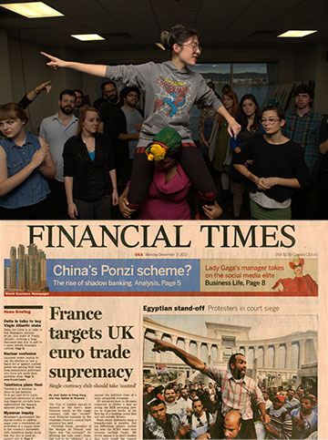 In addition to morning and evening street performances, the public is invited to participate in workshops led by Laser, Crabtree and Wiener, in which participants will discuss and recreate headline stories and images at Southern Exposure, August 7 – 11, 2013, 1 – 3 pm. Register to participate in the workshops via Eventbrite at http://www.eventbrite.com/org/994232247.