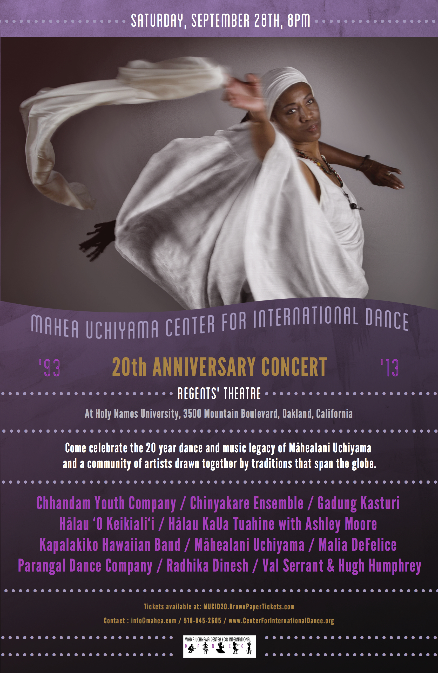 Come celebrate the twenty-year dance and music legacy of Mahealani Uchiyama and a community of artists drawn together by traditions that span the globe.