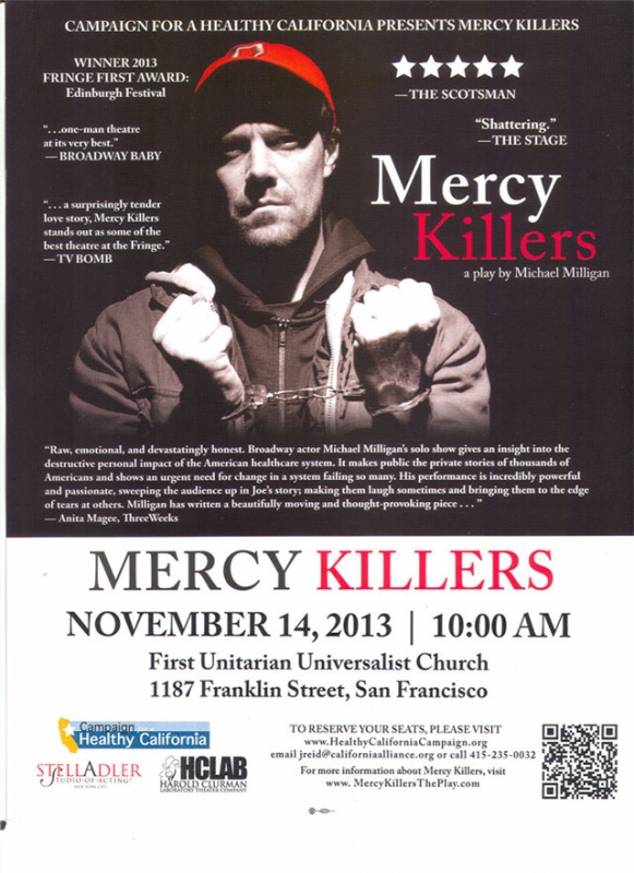 Join the California Alliance for Retired Americans (CARA), Senior Disability Action, Gray Panthers of SF, and many other groups for a special presentation of "Mercy Killers," to be followed by a discussion of the healthcare crisis and the need for single-payer, Medicare-For-All system of healthcare, providing equal, accessible, and affordable healthcare for all, regardless of age, job, health, income, or citizenship status.