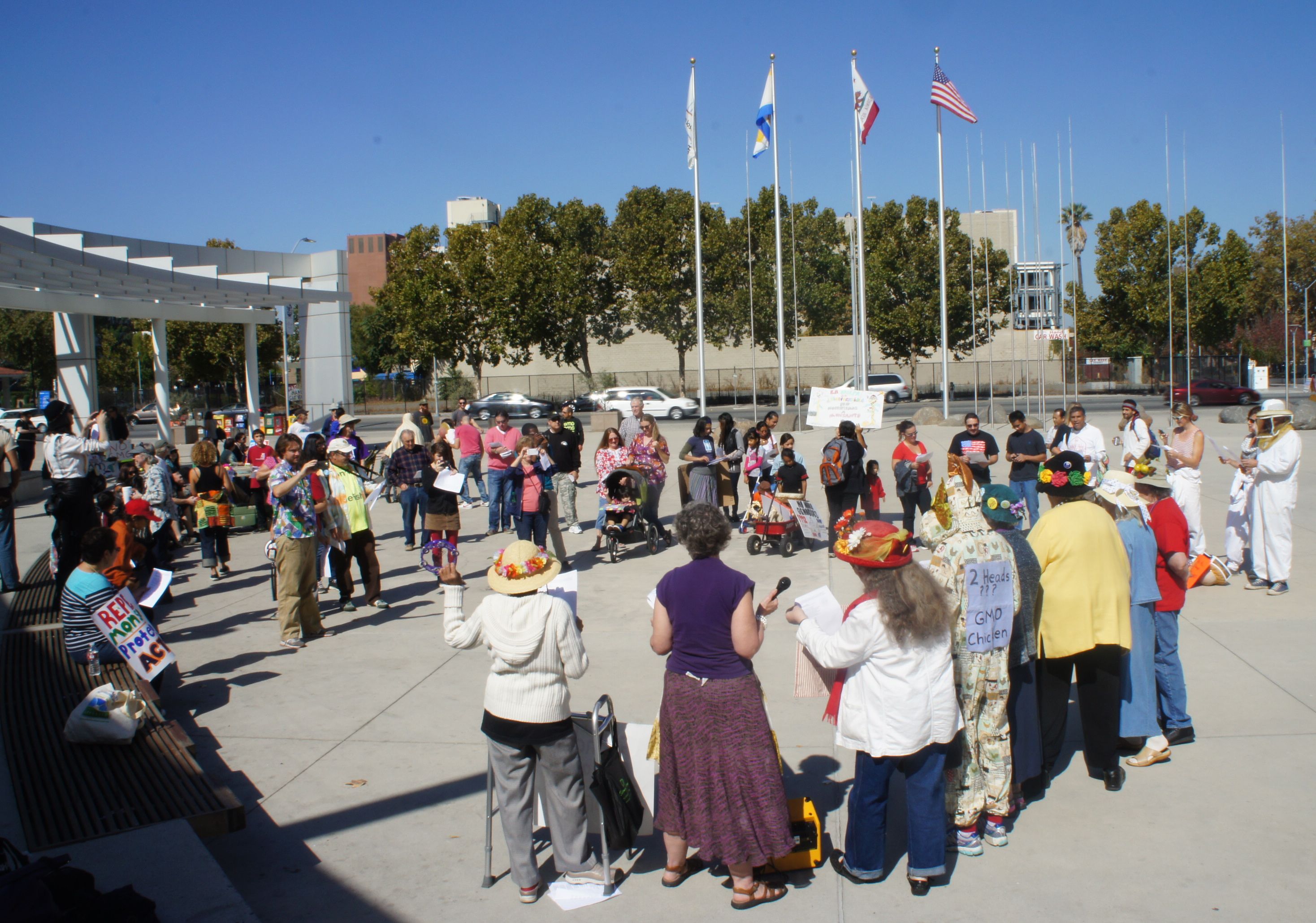 They were joined by the Raging Grannies (Las Abuelitas Enojadas), members of the San Jose Peace and Justice Center, and many citizens concerned for food safety. Food Not Bombs provided lunch under the bright sun.