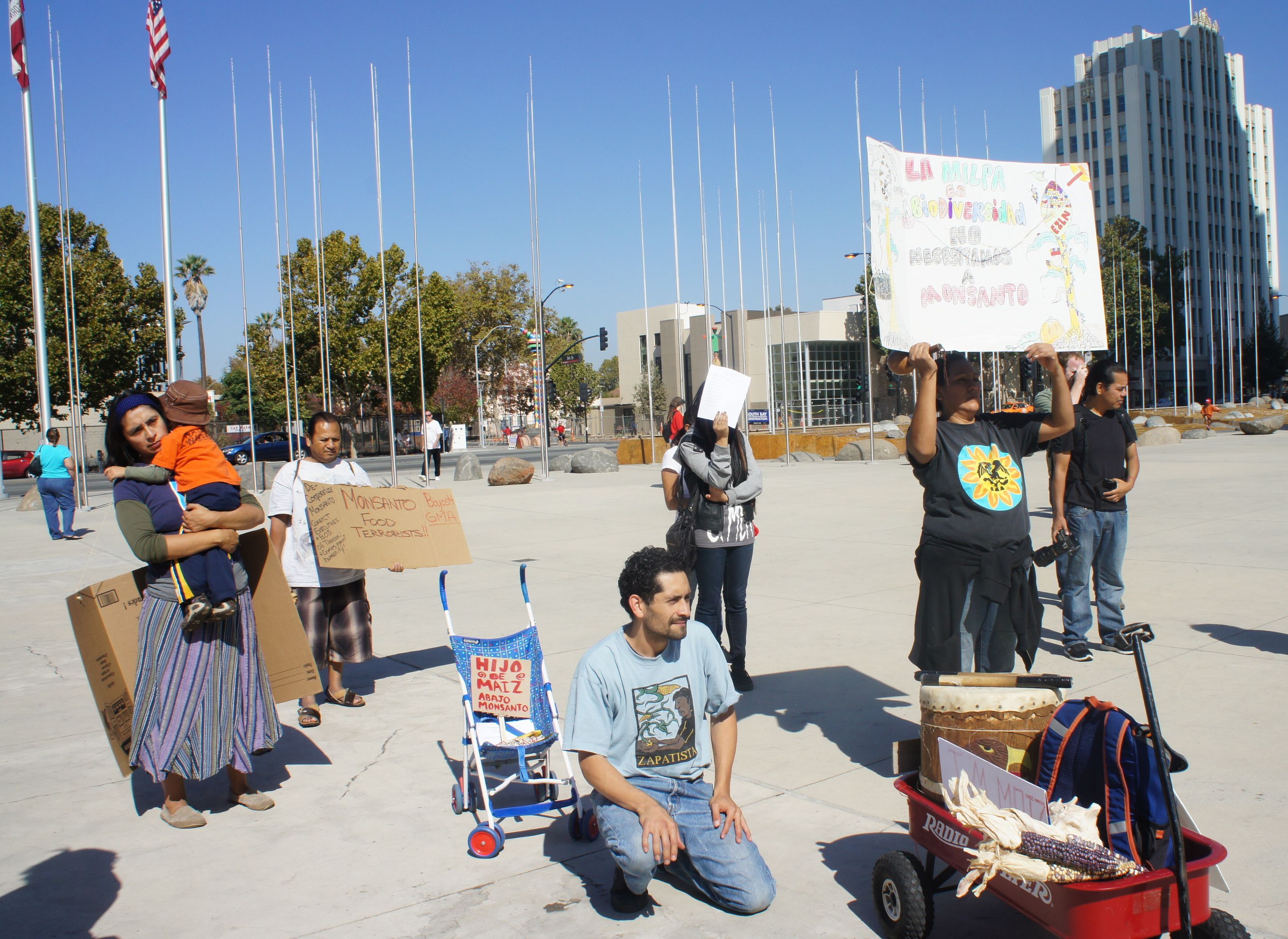 Called Organismo modificado genéticamente or organismo transgénico in Spanish, GMO's were the topic of the day on Saturday as members of La Defensa del Maiz San José gathered in front of City Hall in San José, California to protest Monsanto's corporate control of our food.