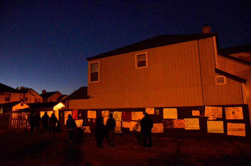 On October 28, the friends and family of Andy Lopez held a Rosario for the 13-year-old at the location where he was killed by a Sonoma County Sheriff's deputy on Moorland Avenue in Santa Rosa. [Top photo: Andy's father Rodrigo Lopez, in the white sweatshirt, is illuminated by a television camera during the Rosario]