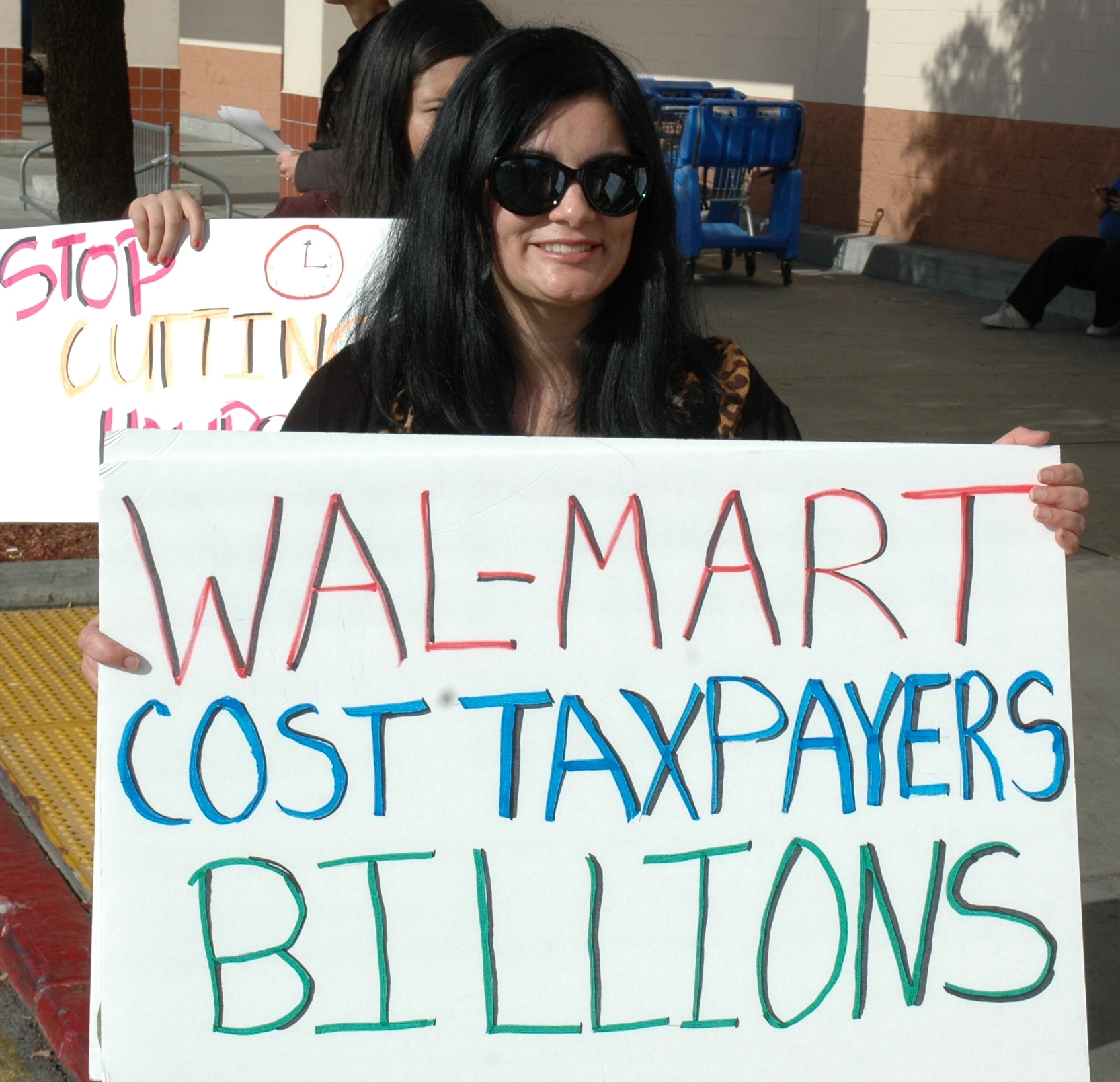 Protesters held signs in front of the Shaw avenue Walmart in Clovis today (Black Friday) as part of a nationwide effort to hold Walmart accountable for low wages.