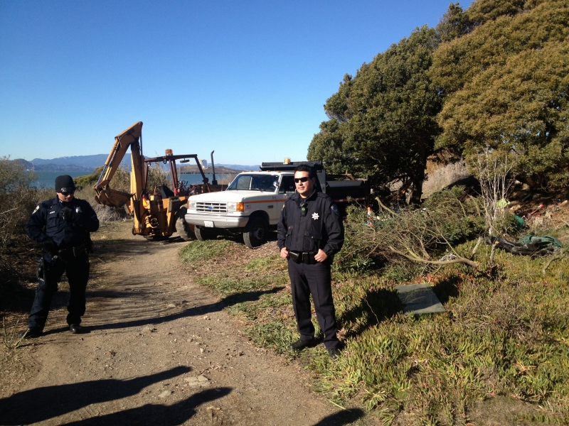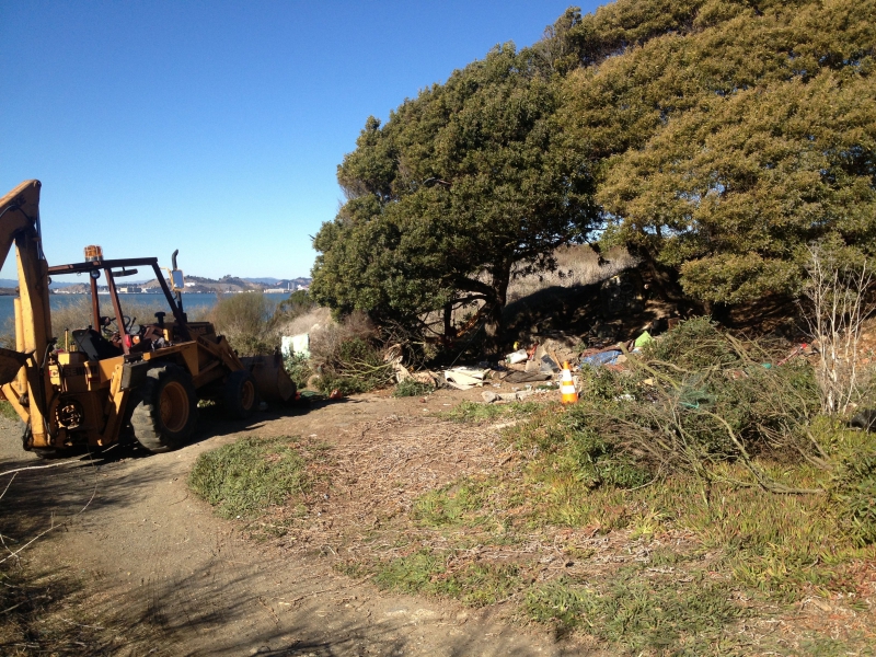 Almaguer said the items removed were "general debris and trash." A bulldozer/backhoe was used and can be seen in photos posted at Indybay.org.