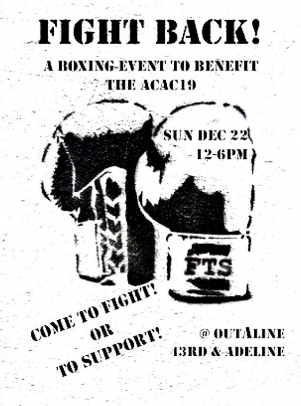 All fundraising to benefit the ACAC19, group of folks arrested on Oct. 6th 2012 at the anti-Columbus day demonstration in San Francisco.
