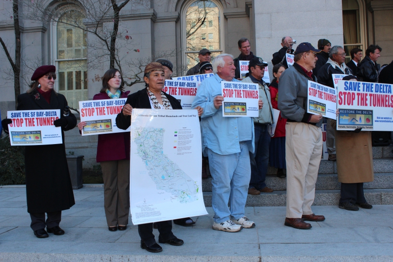 The California Natural Resources Agency on Monday, December 9 released 34,000 pages of Bay Delta Conservation Plan (BDCP) documents for public review as tribal leaders, fishermen, family farmers, environmentalists, water agency leaders and elected officials held a press conference on the north steps of the State Capitol protesting the project.
