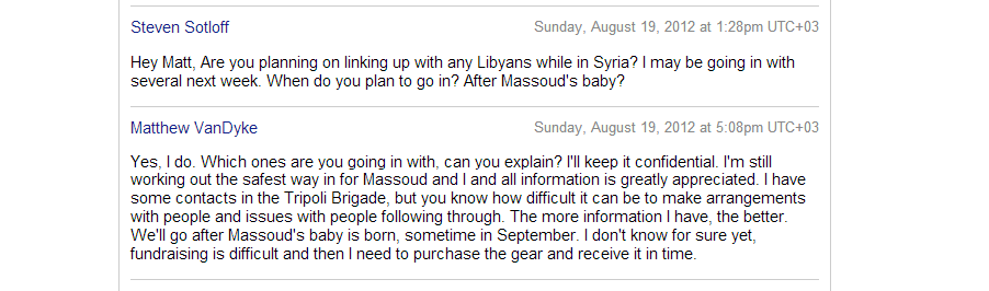 In a recent e-mail leak released by the Syrian Electronic Army (SEA), correspondences between US contractor Matthew Van Dyke and Western journalists revealed that in addition to intentionally deceiving the public regarding the nature of the conflict, aid shipments were being used to smuggle in equipment, fighters, and weapons.