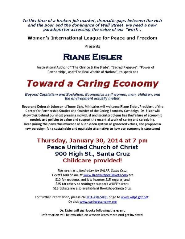 For further information, please call 831-428-5096 or go to http://www.wilpf.got.net. Or visit http://www.caringeconomy.org