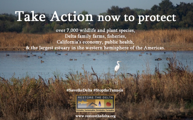 Meanwhile, go to http://www.restorethedelta.org to sign up for action alerts against Governor Jerry Brown's Bay Delta Conservation Plan to build the twin tunnels.