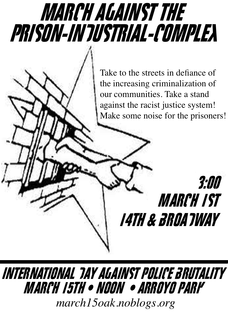 Take to the streets in defiance of the increasing criminalization of our communities. Take a stand against the racist justice system! Make some noise for the prisoners!