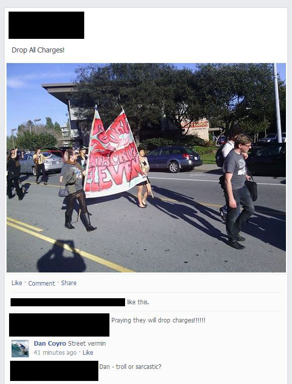 Number two Santa Cruz Sentinel photographer Dan Coyro has called members and supporters of the Santa Cruz Eleven "roaches" and "street vermin" in recent comments he left on two different posts on a Santa Cruz City Council candidate's facebook page.