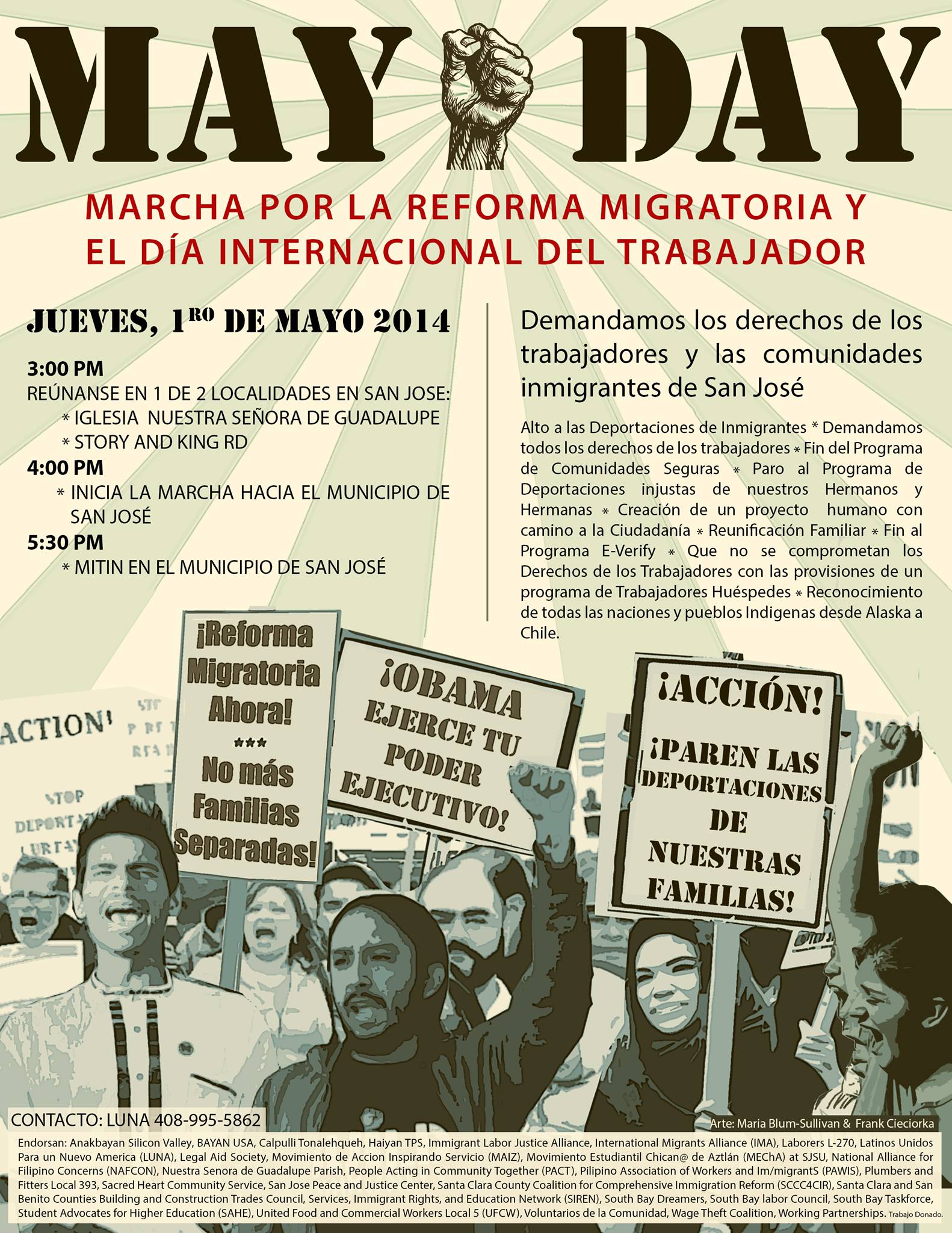 Come join over twenty grassroots organizations that will come together on May 1st to demand the rights of workers and migrant communities in San Jose promoting full workers rights while denouncing Obama’s Two Million Too Many deportations!