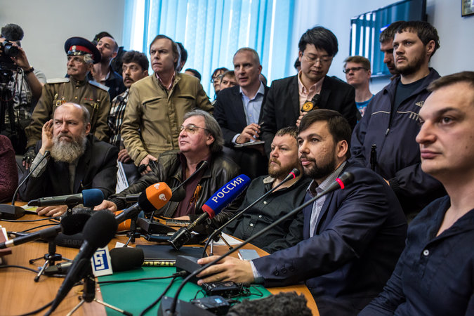 [Photo: May 8th press conference of the Donetsk People’s Republic announcing plans to carry out the scheduled May 11 referendum. Credit Brendan Hoffman/Getty Images]