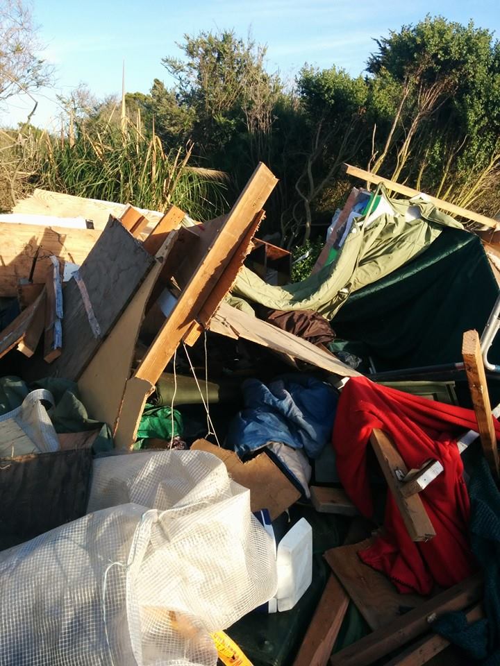 Yesterday the police and city illegally destroyed a very nice shack that an older man was living in so in response and preparation for the reoccupation, 9 blockades were built at major chokepoints of the Bulb to keep the cops from evicting the last remaining residents. Each barricade was made of large rocks/slabs of concrete and large branches that were cut down by the city stacked up to be about 5 feet tall. Unfortunately we did not have enough people to defend the barricades and they were demolished this after noon. We need your help!