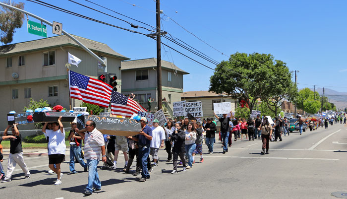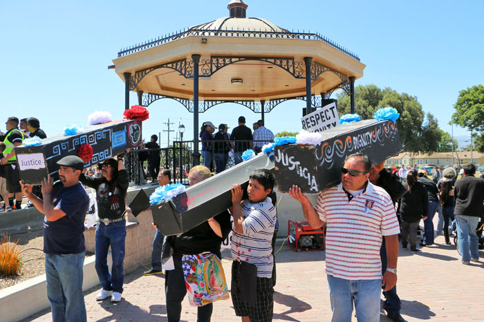In response to the recent killings of three residents by officers with the Salinas Police Department, a coalition of local political and labor groups organized a march and rally for "Respect, Dignity, and Justice" in East Salinas on May 25. The rally began at Closter park, and after hearing from relatives and family representatives of the deceased, the march visited two of the locations where the killings occurred. The event was organized by a number of political and labor groups, including the Salinas Council of the League of United Latin American Citizens (LULAC) and United Farm Workers (UFW).