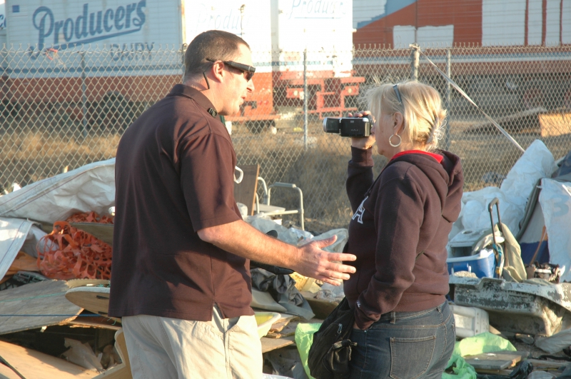During the Oct. 23, 2013, demolition of the Grain Silo homeless encampment, Breedlove took video, including a scene where he asked an on-duty police officer for his name and badge number. The officer ignored the request. ACLU attorney Coleman, citing California Penal Code §830.10, says that “any uniformed peace officer shall wear a badge, nameplate, or other device which bears clearly on its face the identification number or name of the officer.”