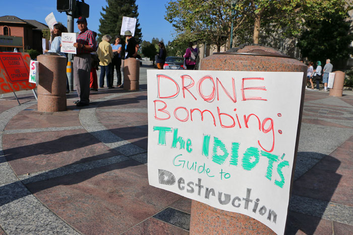 Sandino Gomez of the Resource Center for Nonviolence (RCNV) said he was at the vigil for the same reason he attended a similar demonstration at the Town Clock over a decade ago, when the United States originally invaded Iraq.