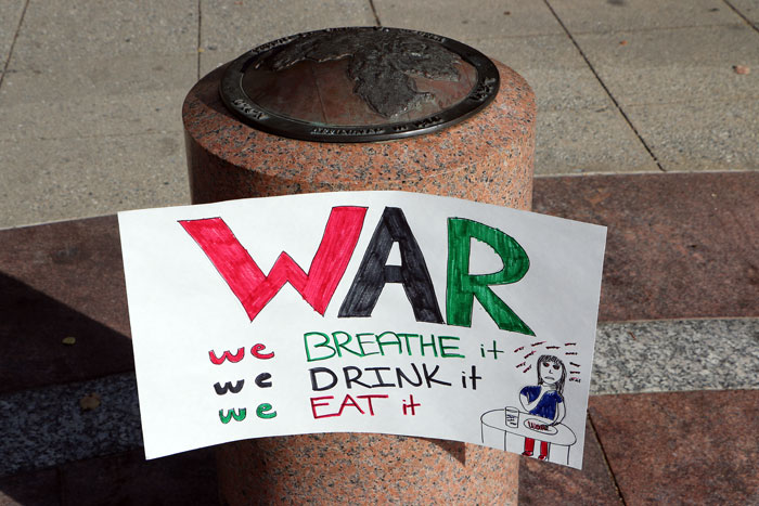 Many participants at the vigil, including Gomez, highlighted how the cost of financing the wars in Iraq has affected the funding of social programs in the United States.