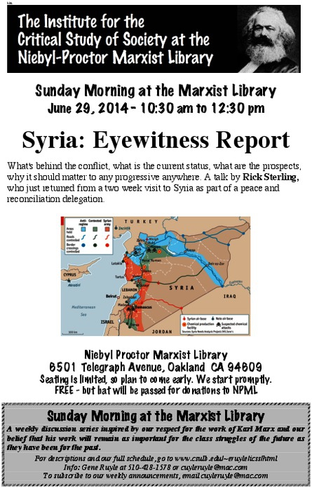 What's behind the conflict, what is the current status, what are the prospects, why it should matter to any progressive anywhere. A talk by Rick Sterling, who just returned from a two week visit to Syria as part of a peace and reconciliation delegation.