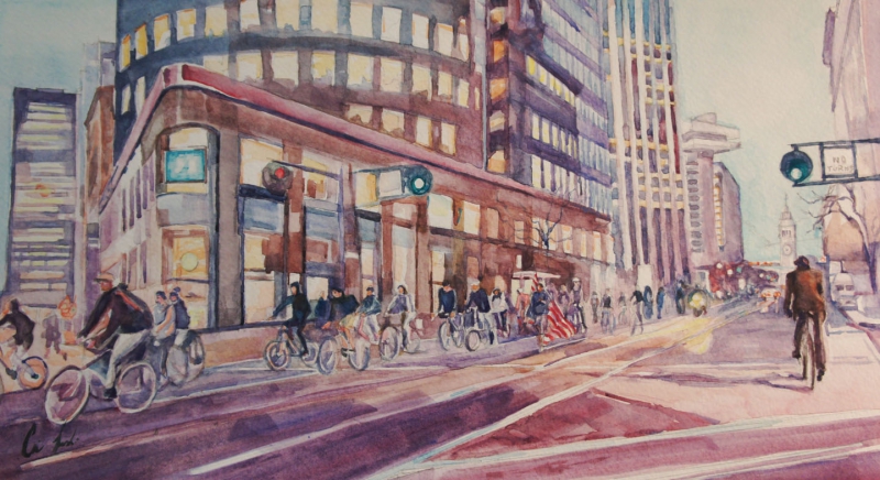 In these hard and confusing times, where as an adult I must understand that everything that I do affects the universe, I see people taking sides and deciding who they fit with best. In this water color series I take my personal stories to capture the collaboration in the city of San Francisco where political, social, educational and artistic systems are always changing.