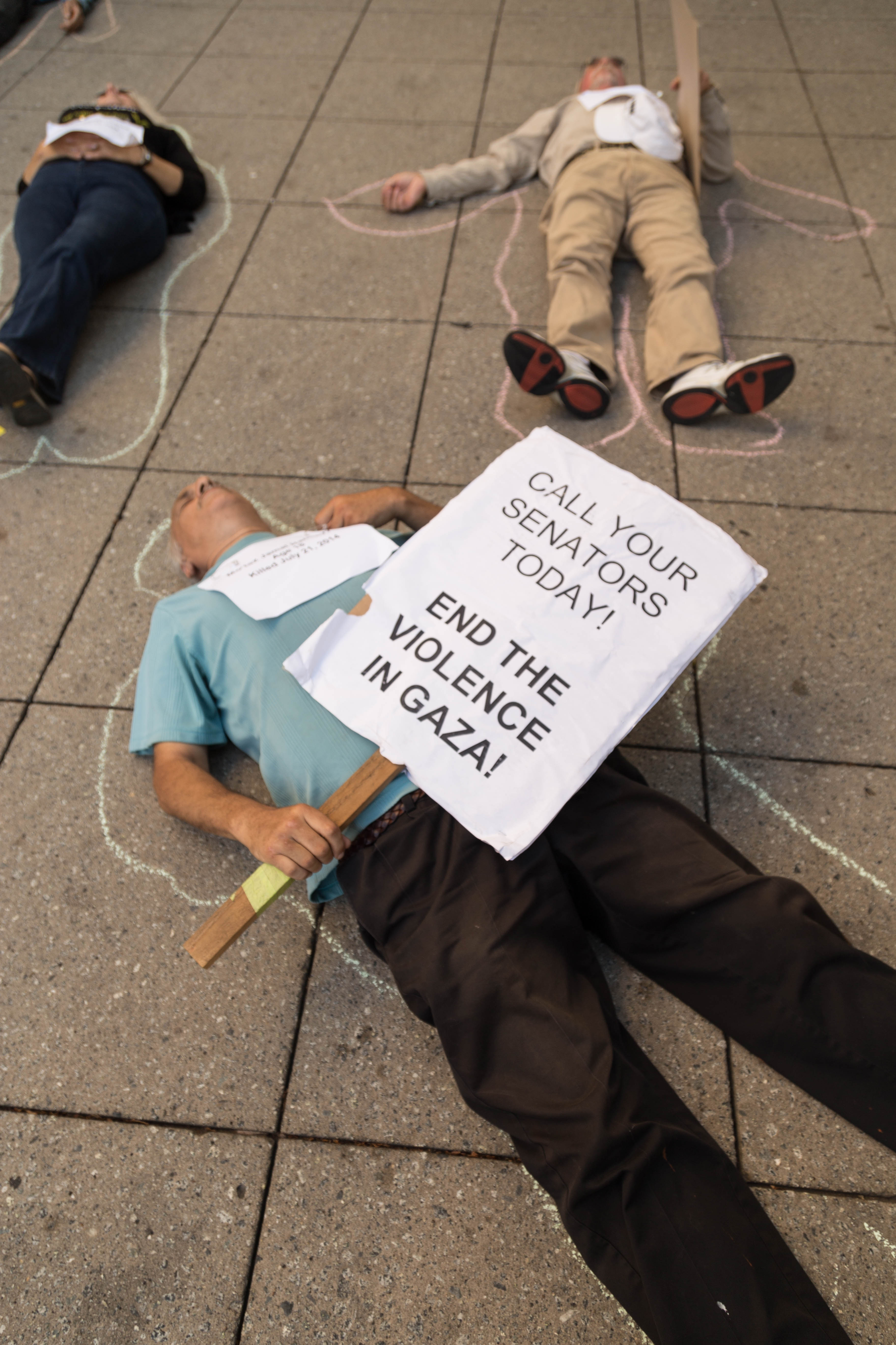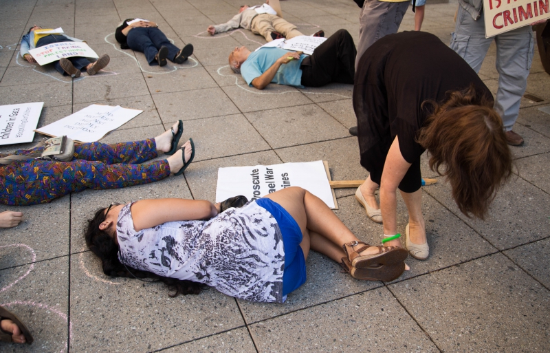 Die-in to protest Israel's Assault on Gaza drew dozens of protesters on Monday, Aug. 4th