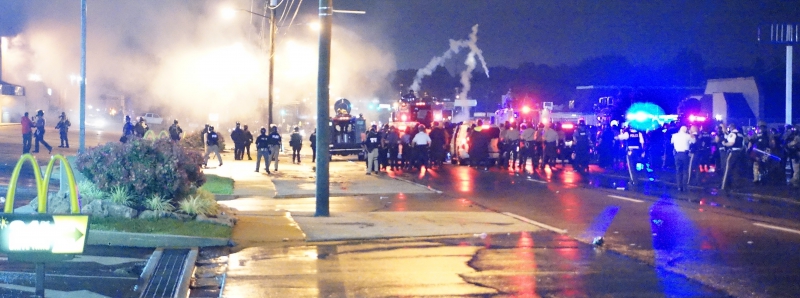 A State of Emergency was placed over Ferguson and surrounding towns to be able to activate a mutual aide package, make being in public illegal after 12am, and justify the large volume of gas and smoke launched at demonstrators last night.