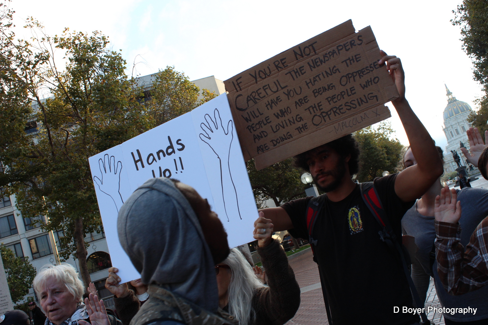 These are photos from the "State of Emergency 'march' in support of Ferguson," that was held in San Francisco on Thursday August 21, 2014.