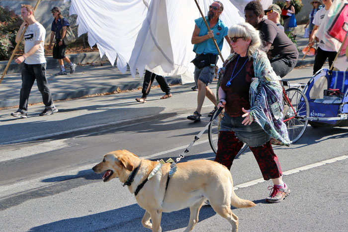 The visit to Wells Fargo felt much like the 2011 occupy protests that occurred there, and many of the other locations visited along the parade also recalled the occupy era. The court house was visited, as was San Lorenzo Park, and the parade traveled the length of Pacific Avenue twice. The parade also made its way past 75 River Street, where the building still sits empty and unrented, as it has for six years now.