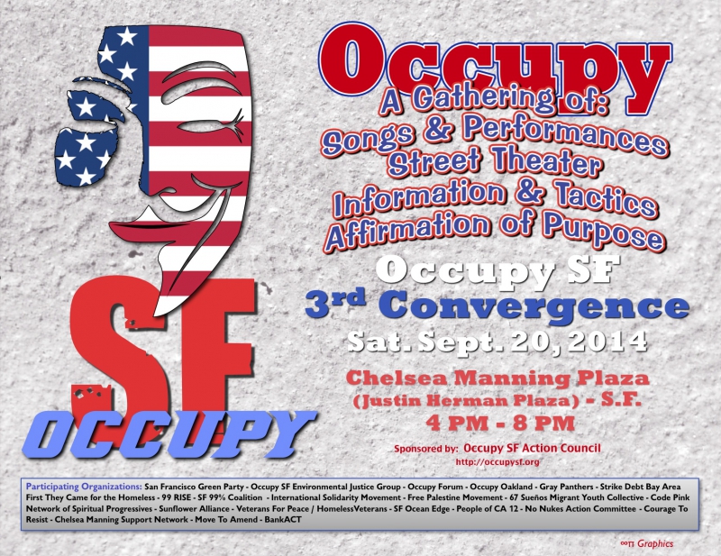 A Gathering of: Songs & Performances, Street Theater, Information & Tactics, Affirmation of Purpose.