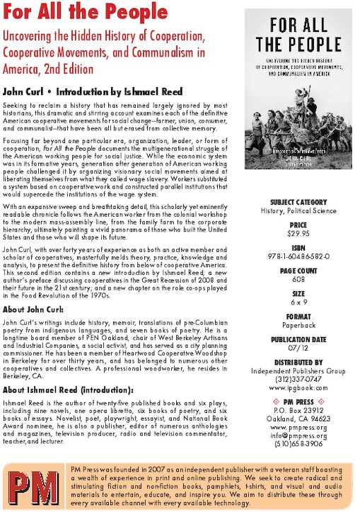 John Curl will discuss his book, For All the People: Uncovering the Hidden History of Cooperation, Cooperative Movements, and Communalism in America, 2nd ed. (PM Press, 2012). A group discussion will end John's talk, and copies of For All the People will be available. Our talks are free and open to the public. If you wish to support the Marxist School’s endeavors, you can make a safe and tax-deductible donation by PayPal from our website: www.marxistschool.org.
