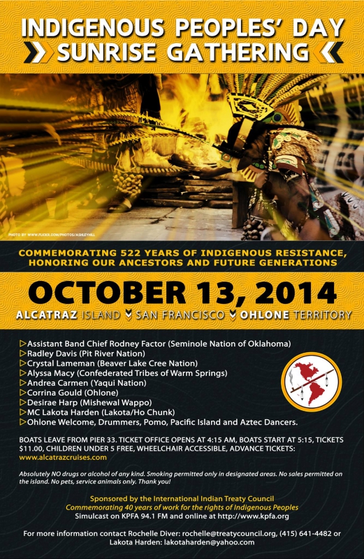For more information contact Rochelle Diver: rochelle [at] treatycouncil.org, (415) 641-4482 or Lakota Harden: lakotaharden [at] yahoo.com
