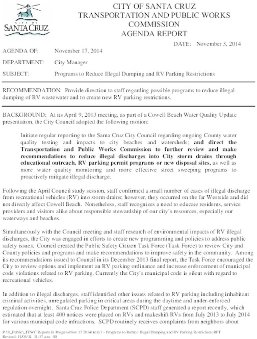 I append the two proposed anti-RV ordinances as well as the staff report. More is available by checking the agenda above.