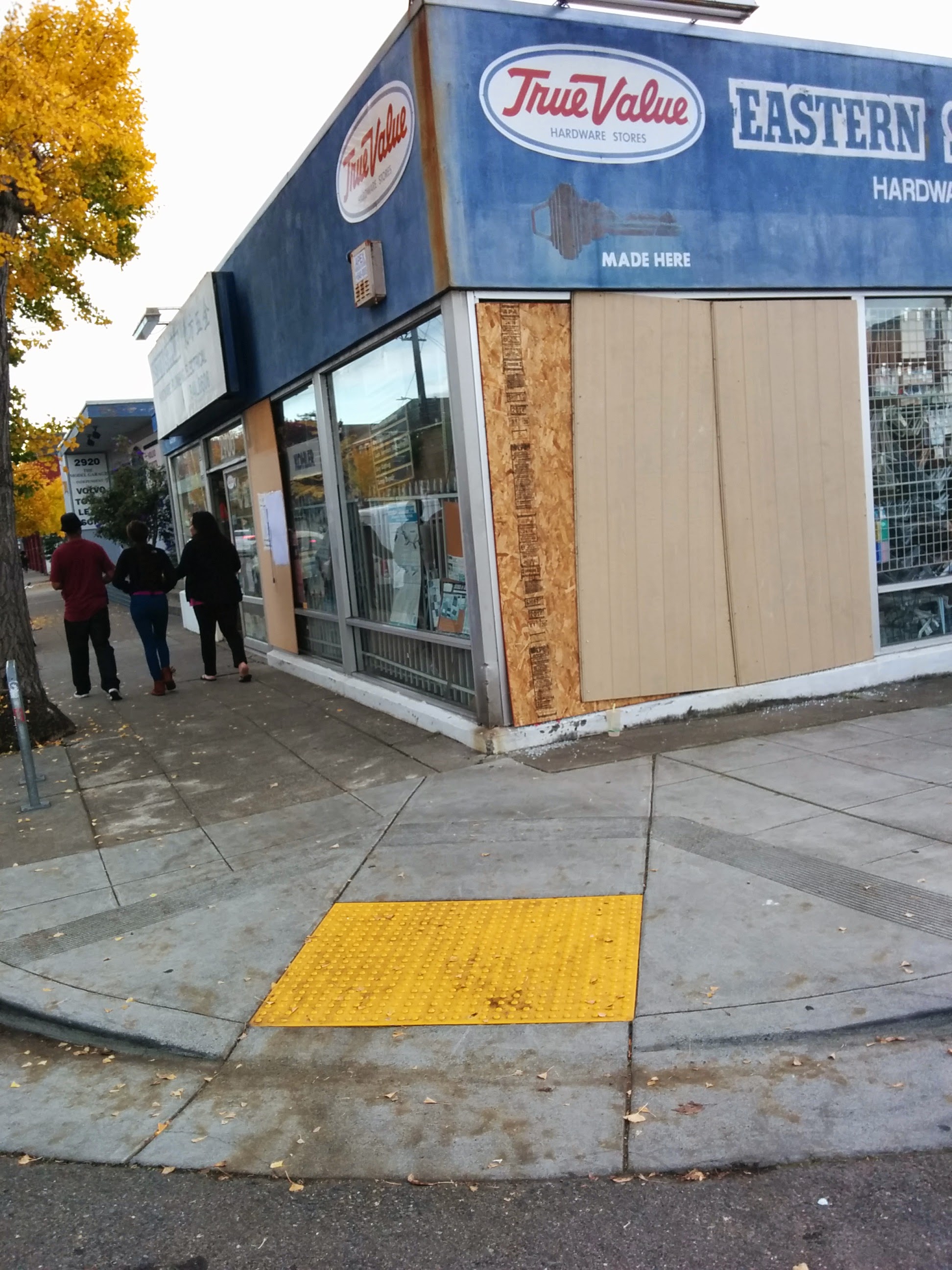 Eastern Hardware on Shattuck, est $2000 in damage (owned by people of color)