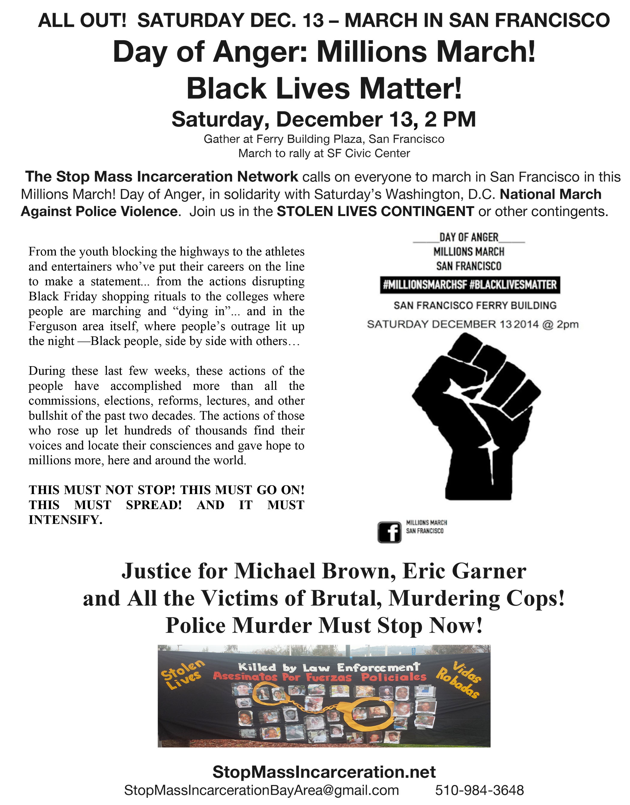 ALL OUT! SATURDAY DEC.13--MARCH IN SAN FRANCISCO