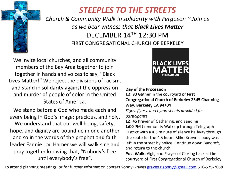 Church & Community Walk in solidarity with Ferguson ~ Join us as we bear witness that Black Lives Ma4er
