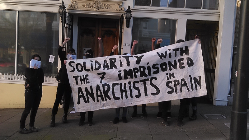 On December, 22nd, 2014, a group of anarchists stormed the Spanish consulate in San Francisco. After throwing leaflets into the consulate, tipping over the Spanish flag, and yelling curses, the group left without incident.