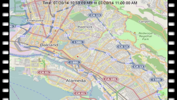 Downtown: Oakland PD headquarters is located near the corner of 7th St. and Broadway, so the increased number of hits in this area are likely due to patrol cars traveling to and from police headquarters.