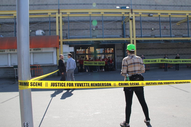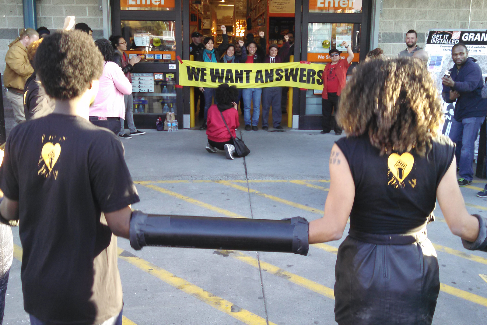 Out of fear of evening protests, Home Depot chose to close their Emeryville store hours early every night the first week after Yuvette was killed. On Saturday, February 21, community activists locked down entrances to the store and effectively closed it for them for the entire day.