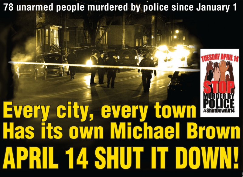 All of us must act on April 14 to loudly declare we will not go back. Stop the police murder of our people.