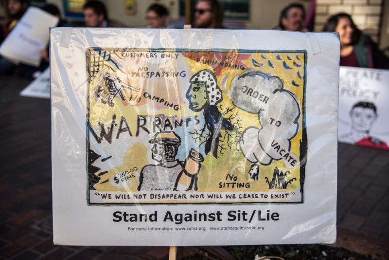"If they really want to have such a discriminatory law (which clearly targets homeless people and travelers), then let's clog their bureaucracies with lot's of citations! There are no fines if you don't do it again for 30 days," a statement announcing the intent of the sit-lie protest explained.