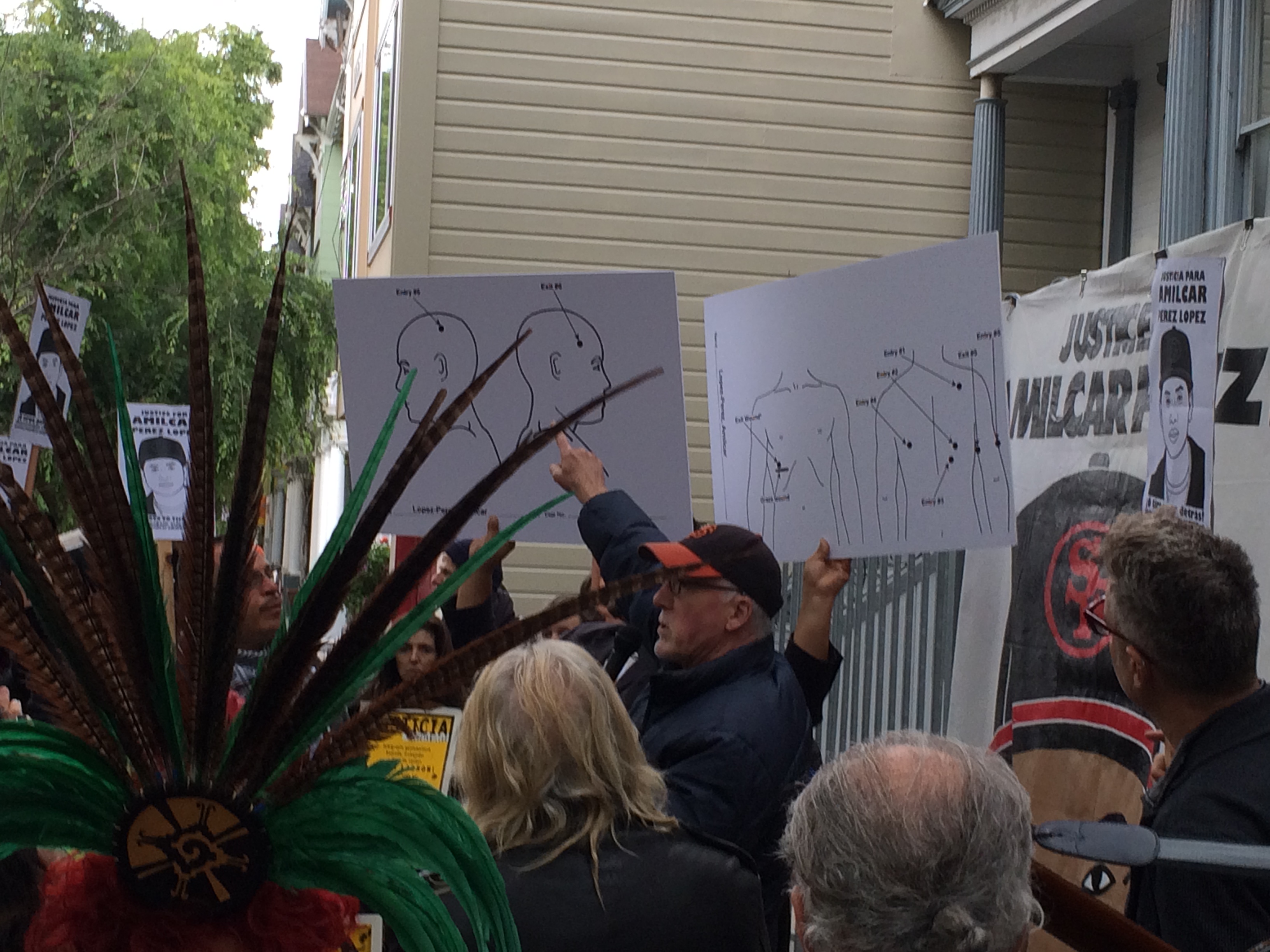 SFPD and Chief Suhr repeatedly stated that Amilcar lunged at the police officers with a knife and that the killing was justified. LIES! The independent autopsy report reveals that Amilcar was shot 6 times from the BACK, one of them striking him in his arm and another to his HEAD. This gives further proof that, according to witnesses, the plain clothed officers who failed to identify themselves attacked Amilcar from the back. When he freed himself from their grip, he ran for his life. The officers, then, executed him! Amilcar Perez-Loped was MURDERED by SFPD!!