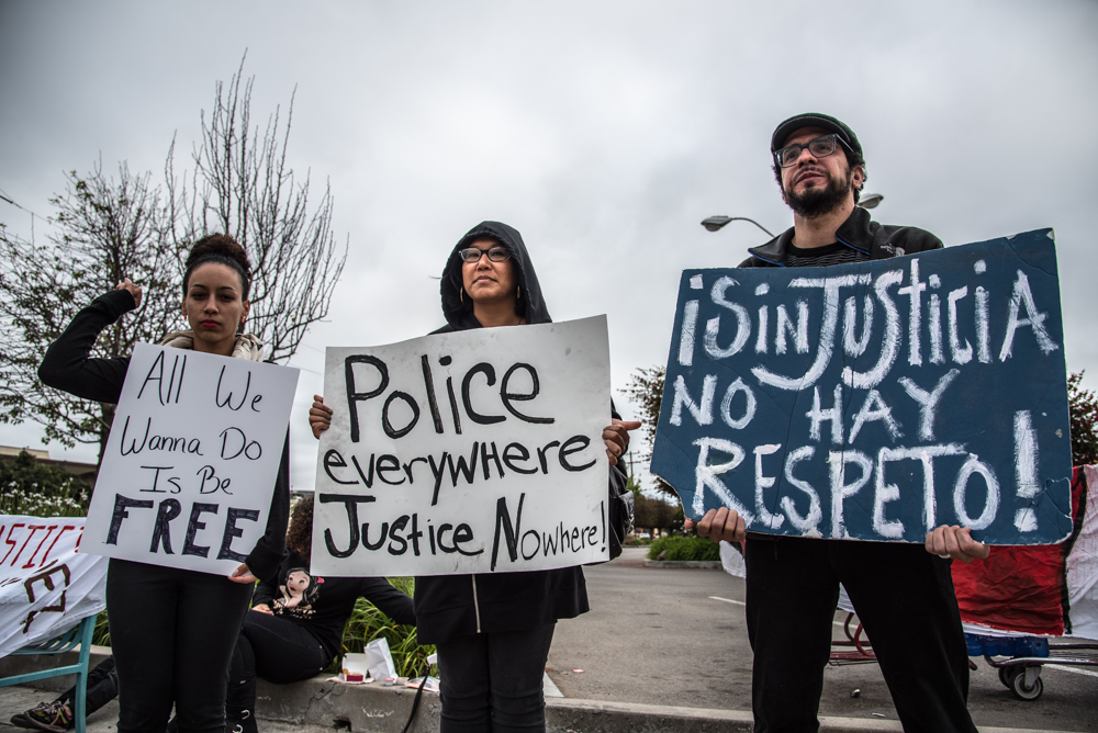Community members in East Salinas held a vigil on May 9 to mark the day 26-year-old Osmar Hernandez was killed by Salinas Police in 2014. Osmar's family members were in attendance; Maria Guardado-Hernandez spoke, and Asuncion Guardado stood by solemnly while holding a lit votive candle. Also in attendance were the family members of two other men killed by Salinas Police in 2014, Frank Alvarado and Angel Ruiz. In all, five Latino community members died at the hands of Salinas Police in unrelated incidents in 2014. Four were shot and killed, and one died after being tased. In 2015, community members have been honoring the victims with vigils. On March 20, a vigil was held for Angel Ruiz, and a vigil is planned for May 20 to honor Carlos Mejia-Gomez at the location of his killing.