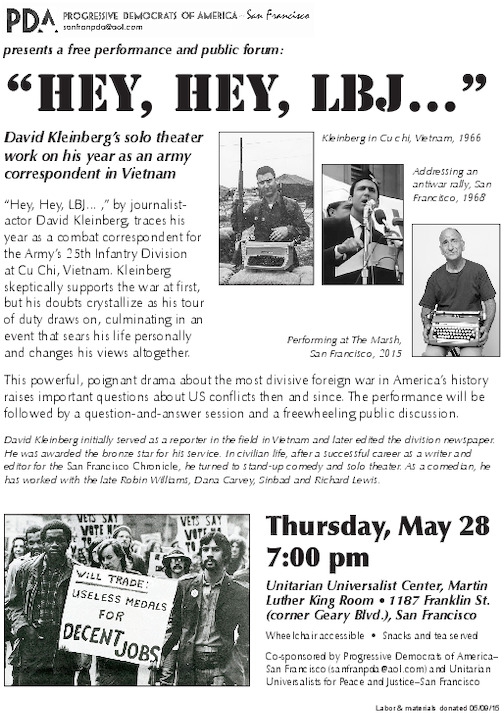 HEY, HEY LBJ! David Kleinberg's solo theater work on his year as an army combat correspon