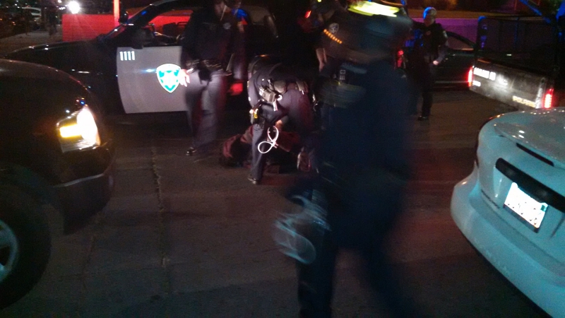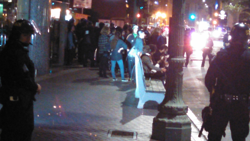 May Day in Oakland began with the ILWU shutting down the port of Oakland in a show of support for the Black Lives Matter movement. A large morning march then headed to Oscar Grant plaza for an afternoon rally. Originally, a call-out was made for an evening anti-capitalist march starting at Latham Square, but after Baltimore exploded in protest on the day of Freddie Grey's funeral on April 27, the march was instead called as a solidarity action, Oakland 2 Baltimore. At it's height, marchers numbered close to 200 people, playing cat and mouse with Oakland police who tried multiple times to redirect the march or prohibit it from proceeding.