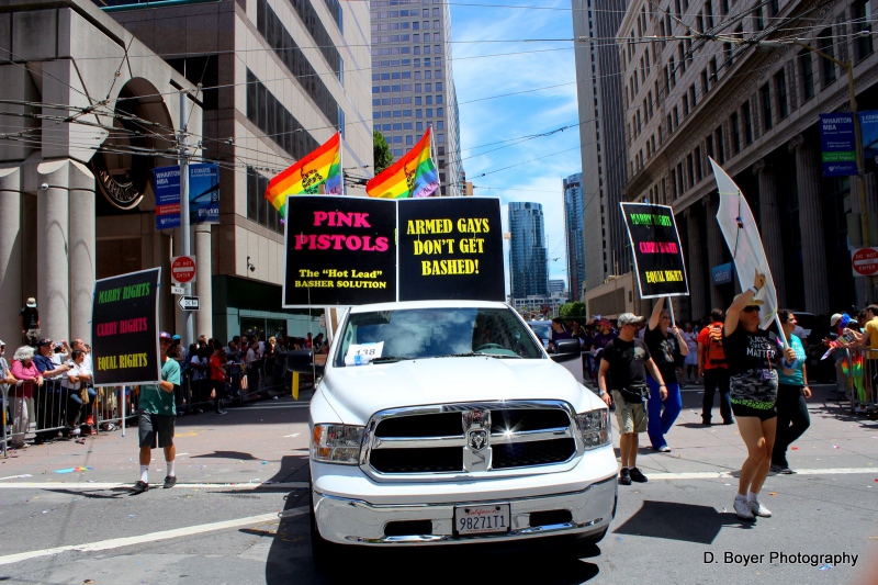 The San Francisco Chapter of the Pink Pistols, a pro firearm self defense group marches in the SF LGBT Pride Parade.