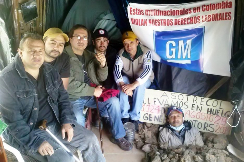 Los Trabajadores unidos en Asotrecol, la Asociación de trabajadores enfermos y despedidos de General Motors en Colombia, próximamente cumpliremos en Huelga cuatro años viviendo en ocupación permanente frente a la Embajada de los Estados Unidos en Bogotá Colombia. Nosotros hemos estado procurando la defensa de nuestros Derechos Humanos y Laborales vulnerados por esta Transnacional Estadunidense General Motors. Solicitamos Solidariamente a la Comunidad Internacional, Sindicatos, Defensores de los Derechos Humanos, Docentes, Estudiantes y Religiosos, Unirse a nuestra Jornada Internacional de solidaridad con nuestra Lucha para celebrar los cuatro años de resistencia. Específicamente pedimos que organicen: