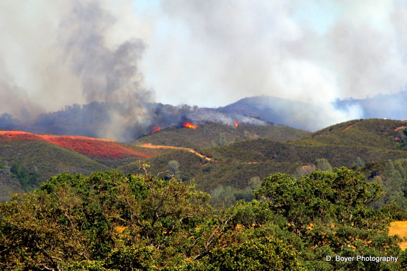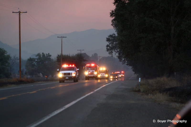 The Rocky Fire leapt across highways and produced numerous spot fires. Spot fires are caused by firebrands or embers dropping into the dry timber and shrubbery setting off other fires that keep the firefighters scrambling. When I drove down highway 20 I noticed there were numerous locations where spot fires occurred and some were left burning. At that point firefighter’s priorities were protecting and saving structures. I had also noticed firefighters were able to save some structures.