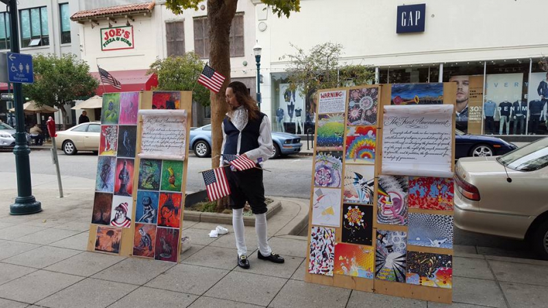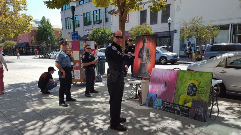 On Thursday, August 20, 2015 -- Joff Jones and Alex Skelton were arrested on Pacific Avenue in Santa Cruz in front of Forever 21 for displaying their artwork.