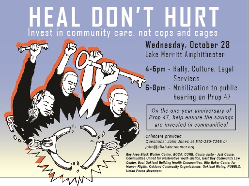 6-8 pm: Mobilization to Public Hearing on Prop 47 at Alameda County Administration Building (1221 Oak Street, Oakland).
